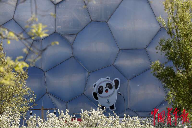 4月16日,北京,绿树和樱花掩映下的国家游泳中心。中青报·中青网记者 陈剑/摄