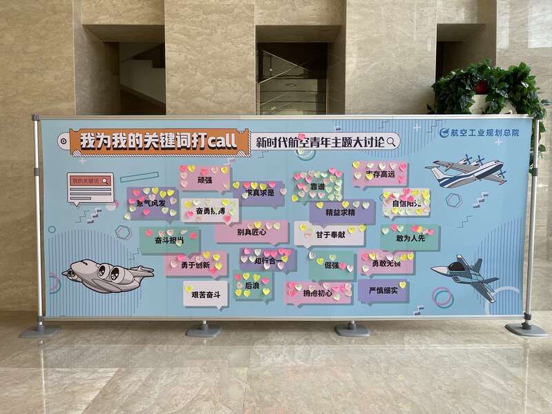 大讨论中,航空工业各级团组织迅速响应,20万航空青年燃起热情、深入思考、凝聚共识。截至目前,航空工业团委从收到投稿、漫画、文创产品等来自大江南北的1000余副作品中,以“欲与天公试比高”的志气、“千磨万击还坚劲”的骨气、“长风破浪会有时”的底气描绘出新一代航空青年的“自画像”。