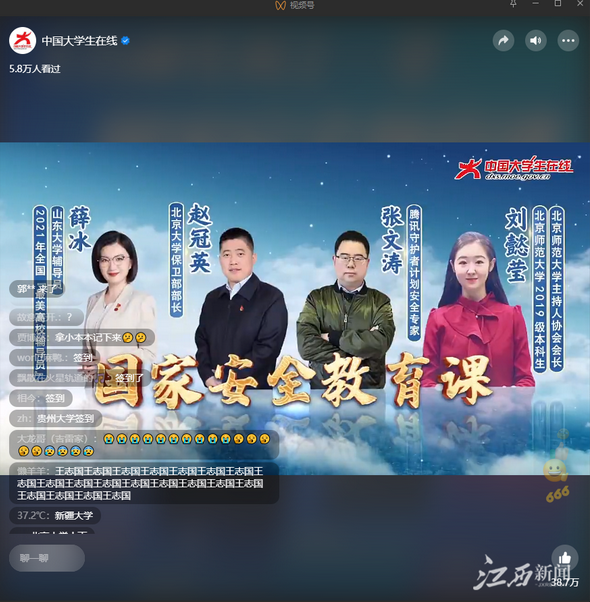 4月14日15时,江西服装学院师生在观看了“千万师生同上一堂国家安全教育课”后,大家在感悟新时代国家安全成就的同时,对国家安全法等法律法规有了更深的认识。