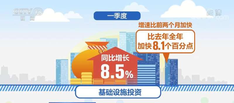 来看两组数据,国家统计局刚刚公布的数据显示:一季度,我国固定资产投资超过10万亿元,同比增长9.3%,好于去年全年的4.9%。一季度,基础设施投资同比增长8.5%,增速比前两个月加快,比去年全年加快8.1个百分点。今年以来,我国下达的铁路、民航、公路等领域中央预算内资金超过460亿元,铁路、公路等交通行业固定资产投资完成约6360亿元,同比增长约9.8%。