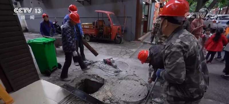 位于重庆市璧山老城区的中心小区,是今年的老旧小区改造重点区域。记者在现场看到,钻机轰鸣、施工队正在翻修所有的道路。
