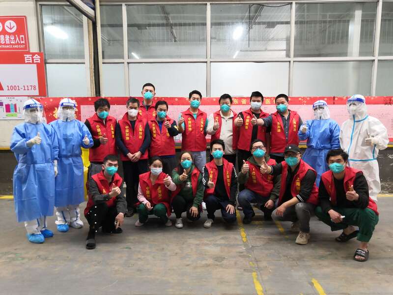 山东省援沪医疗队部分队员与志愿者团队部分成员合影。(图片由山东省援沪医疗队提供)