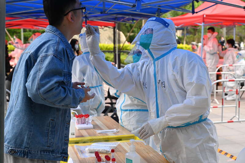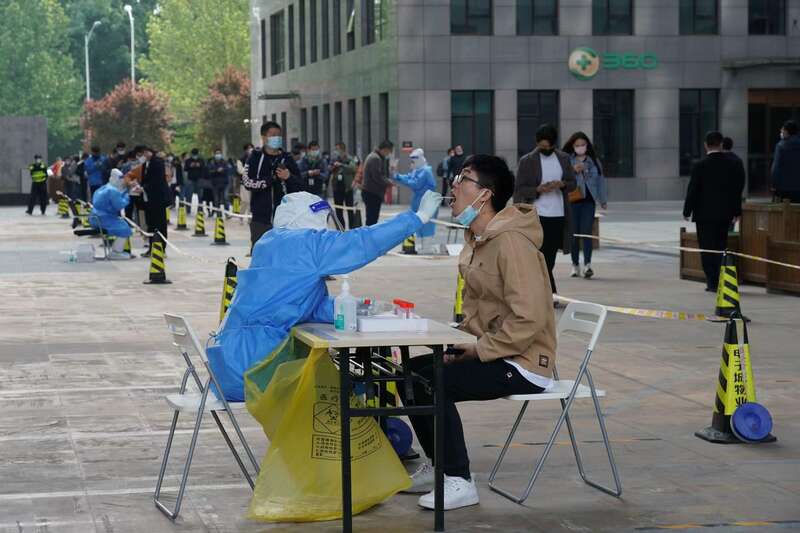 4月29日,电子城国际电子总部核酸检测点。(王飞/摄)