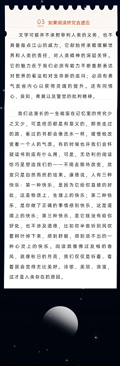 世界阅读日刚过去不久,可是,阅读不止四月。在漆黑的长夜里,你是否愿意在灯下,捧一卷书感受时光流动呢?在萌主看来,阅读可以赋予你理解人类的同情,也可以给你纵观古今的透彻,它作为记载的媒体,一直都在抚摸历史的痕迹,歌唱人类的史诗。它是落霞与孤鹜齐飞那样的壮美,也是青灯古佛般的岑寂,更是残荷夜听雨——每一个阅读的人,都有资格用自己的话语为这段时光打上标记。请和萌主一起来,聊聊那些阅读的日子。