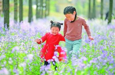 小朋友在山东省滕州市上善公园玩耍。 新华社发