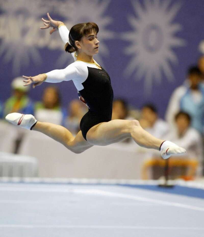 2002年10月5日,丘索维金娜在釜山亚运会女子自由体操决赛中。