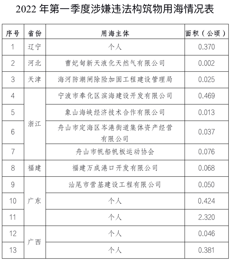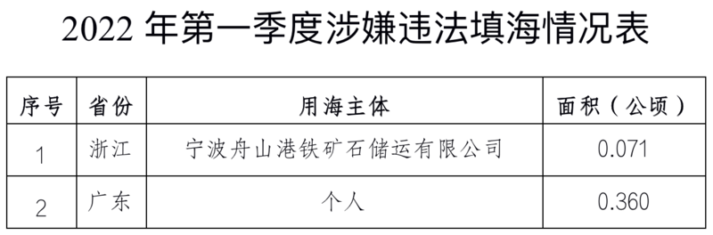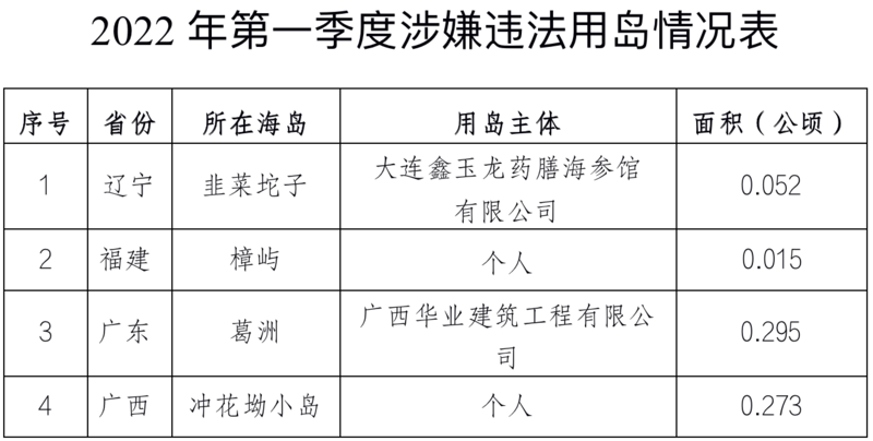 自然资源部公开通报2022年第一季度涉嫌违法用海用岛情况