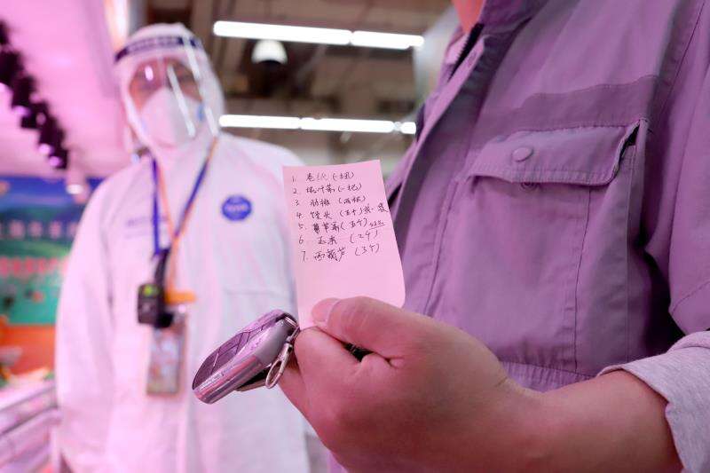 刘先生介绍自己并没有排太长时间就进入了超市。“入口处需要出示自己的购物预约券、48小时核酸报告和健康码,买东西花了20分钟,结账也没有排队。”因为没有车辆通行证,所以刘先生骑非机动车出行,“一切顺利,可以加餐了。”