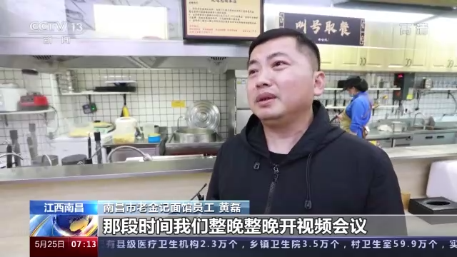 南昌市某连锁面馆员工 黄磊:那段时间我们整晚整晚开视频会议,商量对策,一个办法不行再想一个,一个方案不行再换一个。