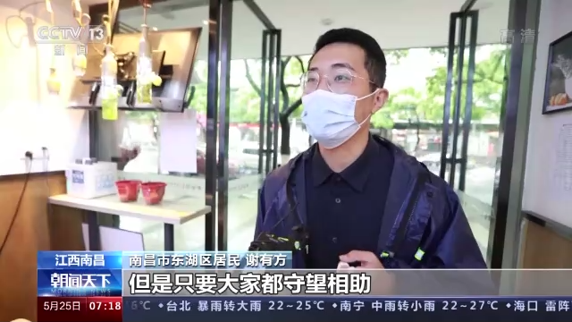 南昌市东湖区居民 谢有方:这件事让我感受到了生生不息的温暖,所以我特意过来支持一下,虽然个人力量有限,但是只要大家都守望相助,没有什么能够打败我们。