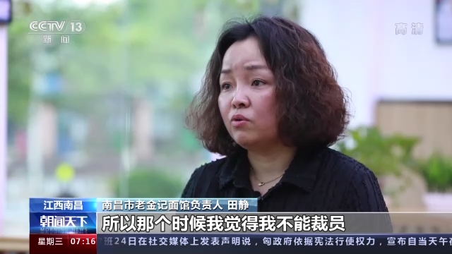 南昌市老金记面馆负责人 田静:虽然那个时候100多号员工我全部留下来的话也力不从心。但是每次我走到店里去,即使是没有(顾客),但我的地面永远是干净的。操作台、厨房里面永远都是一尘不染的,他们(员工)看到我马上就说,田姐,我们把所有的料都备好了!那一刻我心里就特别难受,我觉得他们都在坚持,我还有什么理由放弃?所以那个时候我觉得我不能裁员,我要紧紧地跟他们在一起。
