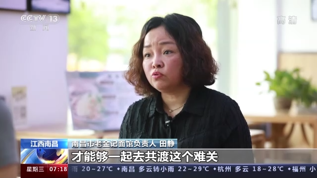 南昌市老金记面馆负责人 田静:对我们来说非常温暖特别感动,因为不是我们一个人在战斗,是政府跟我们站在一起,大家是一起在战斗的。
