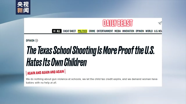 美国新闻网站“每日野兽”则表示,政客们明白在面对枪支暴力事件时不作为并不会有任何政治损耗,他们只需要把工作扔给“思想部”和“祈祷部”就可以了。