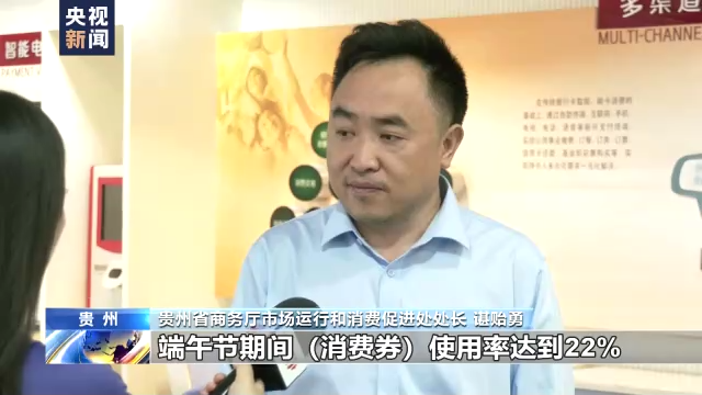 贵州省商务厅市场运行和消费促进处处长 谌贻勇:端午节期间(消费券)使用率达到22%,主要在中小微零售、餐饮门店。