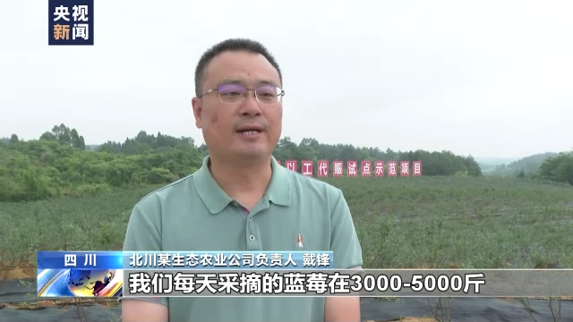 北川某生态农业公司负责人 戴锋:目前,我们每天采摘的蓝莓在3000—5000斤,我们通过配套的整个冷链体系,进行果子的储运、分拣、包装,通过冷链车及时地将果子运往成都、重庆、杭州等大城市进行销售。