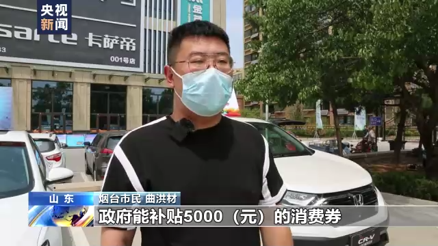 烟台市民 曲洪材:现在这个车,政府能补贴5000(元)的消费券,再加上国家有这个政策,购置税减半,这合计下来一共能省个一万四五千(元)。
