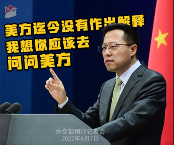 6月7日,外交部新闻发布会,赵立坚:“美方迄今没有作出解释,我想你应该去问问美方。” 图源:外交部官网