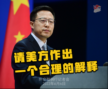 6月6日,外交部新闻发布会,赵立坚:“请美方作出一个合理的解释。” 图源:外交部官网