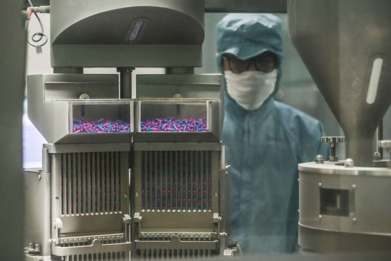 东北制药工作人员在生产车间工作。新华社记者潘昱龙摄