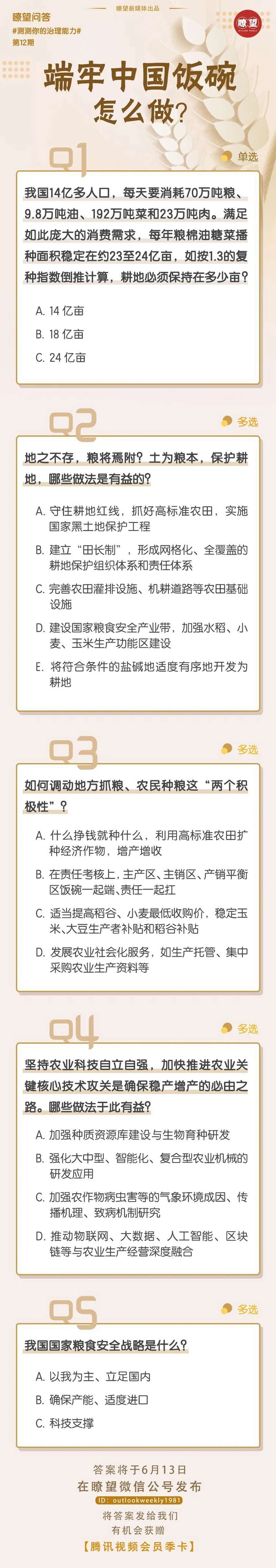 一方面,全面落实粮食安全党政同责,严格粮食安全责任制考核,主产区、主销区、产销平衡区要饭碗一起端、责任一起扛。另一方面,健全农民种粮收益保障机制,适当提高稻谷、小麦最低收购价,稳定玉米、大豆生产者补贴和稻谷补贴政策,实现三大粮食作物完全成本保险和种植收入保险主产省产粮大县全覆盖;大力发展农业社会化服务,带动小农户提高种粮综合效益。