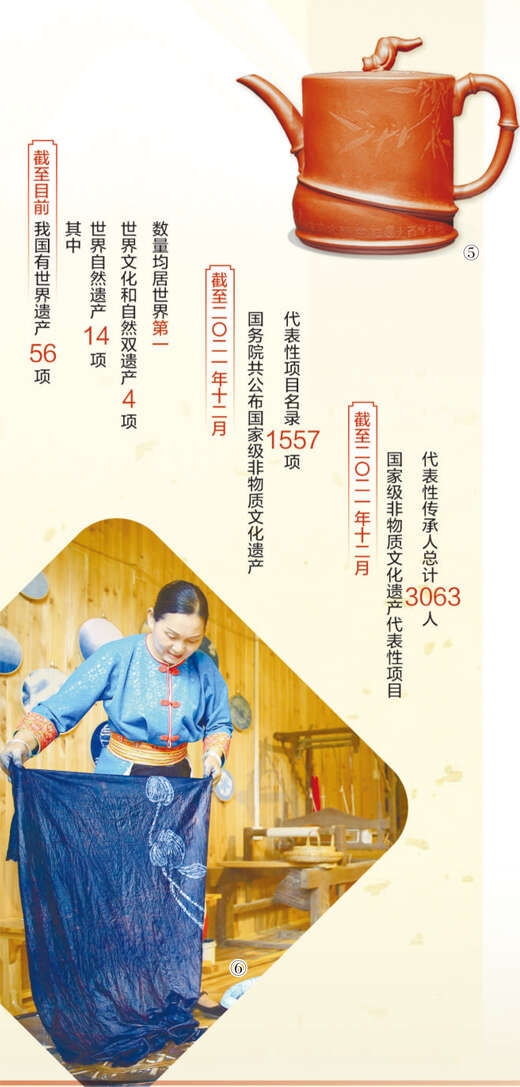 习近平总书记指出:“历史文化遗产承载着中华民族的基因和血脉,不仅属于我们这一代人,也属于子孙万代。”6月11日是我国2022年文化和自然遗产日。近年来,我国切实加大文物保护力度,推进非遗活化利用。无论是文物节目刷屏网络,还是非遗好物圈粉年轻人;无论是老手艺跨界创新,还是非遗走进学校课堂……如今文化遗产日益连接现代生活,绽放迷人光彩,拥抱更广阔的未来。