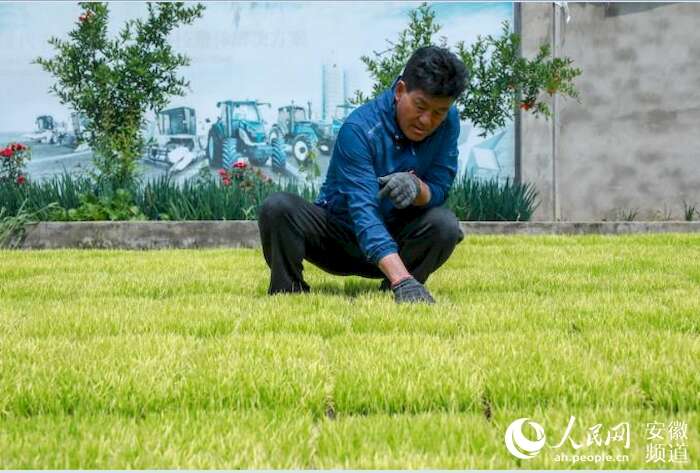 2022年5月25日,种粮大户程夕兵在查看水稻苗长势。人民网 陶涛摄