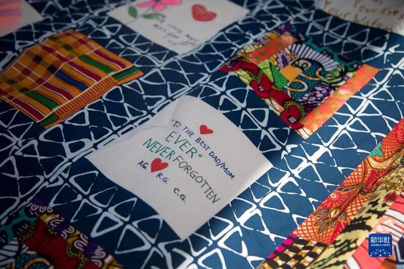 这是6月19日在美国纽约拍摄的悼念新冠逝者的拼布作品。新华社发(郭克摄)
