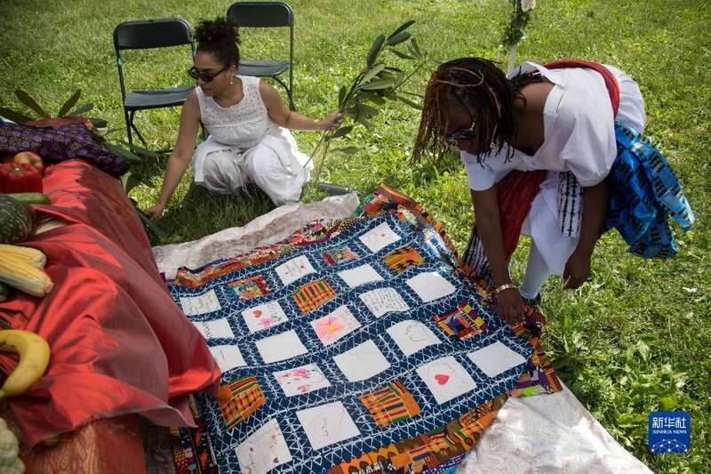 6月19日是美国的六月节,也是纪念和庆祝美国黑人奴隶获得解放的日子。在纽约展望公园六月节庆祝活动现场的一个临时帐篷里,一场悼念新冠逝者的拼布活动,气氛肃穆,与周围欢乐的气氛显得有些格格不入。