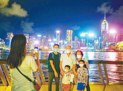 置身于香港街头,庆祝香港回归祖国25周年的横幅与海报随处可见,巴士车身的喜庆涂装格外引人注目;荃湾、尖沙咀等地,中华人民共和国国旗和香港特别行政区区旗飘扬;东区青年广场,熊猫花灯成为市民拍照“打卡”的热门景观;夜幕降临,维港两岸的摩天大厦亮起外墙灯饰,与水面倒影交相辉映……
