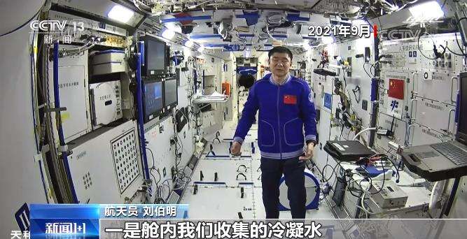 航天员 刘伯明:再生水是怎么来的呢?主要有两部分,一是舱内我们收集的冷凝水,第二部分是我们收集尿液,进行尿处理形成的蒸馏水。