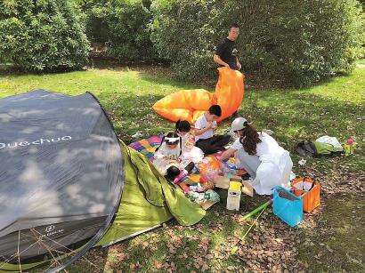 今年5月下旬,柿子(化名)所在的小区成为“无疫小区”。得知可以出门的第一天,她就组织几家邻居去附近的公共绿地露营。