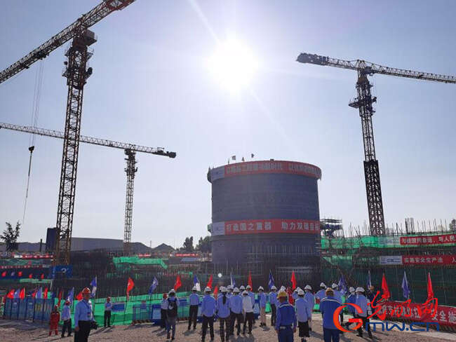 在“玲龙一号”项目施工现场,项目有关负责人介绍,现场施工环境艰苦,最高气温可达40℃,为保证项目在58个月的工期内建成,现场有700多名施工人员有条不紊地开展工作,关键路径24小时保班。