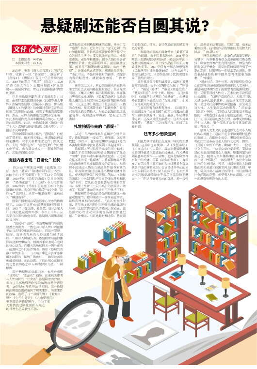 国产悬疑剧的选题内容,也开始出现“日常化”“生活化”趋势,注重现实思考与人性剖析的“社会派”悬疑剧走向台前。参与过几部悬疑剧创作的编剧向君告诉记者,20世纪90年代至21世纪初,国产悬疑剧的剧情设置仍偏向于现实案件、历史案件的改编,出现了《一双绣花鞋》《重案六组》《少年包青天》《大宋提刑官》等多部优秀悬疑剧作,但由于重大案情的戏剧化剖析与观众的日常生活关联性不强,此等佳作仅受到悬疑剧迷的追捧,并未引发“出圈”热议。近几年引发“全民追剧”的口碑悬疑剧,往往将故事背景设置于普罗大众的日常生活中:案发现场近在身边,或是菜市场,或是学校操场;剧中人物的社会背景稀松平常,或是职场同事,或是隔壁友邻,或是并不起眼的班级同学。如此“悬疑”,让观众代入感更强,观剧效果更佳。“由此可见,不论何种题材的创作,把握好内容的贴近性,就能拿捏市场。”向君认为。