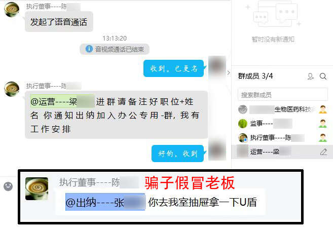 近日,静安区某会计事务所会计业务员张女士应合作公司运营总监梁女士邀请,加入了一个小范围群聊,除梁女士本人外,群内还有梁女士所属公司的“老板”、某生物科技公司的“首席执行官”等人,双方洽谈后,对方请梁女士尽快汇款。收到通知后,梁女士便@张女士,要求将495万元项目款汇入该生物科技公司账户。