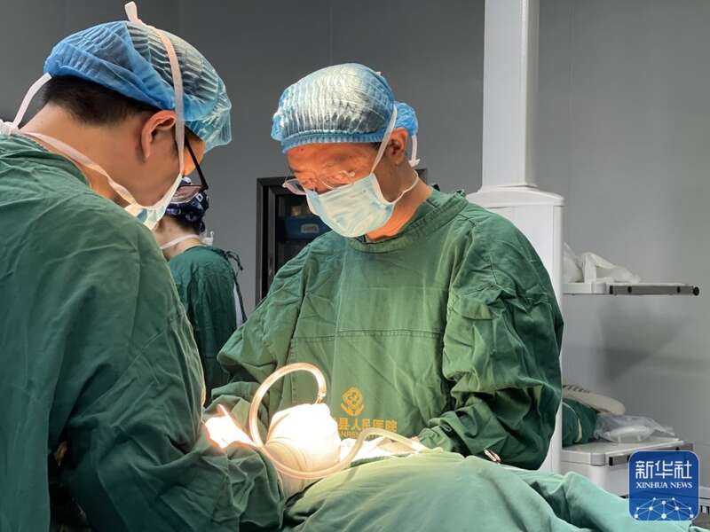 8月10日,在重庆市巫溪县人民医院,田坝镇双箭村驻村第一书记廖正步(右)与当地医生一起进行手术。新华社发(陈玉琼 摄)