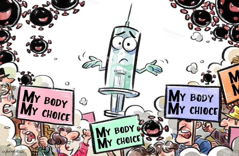 在疫情形势持续严峻的美国,仍在围绕接种疫苗这一最基本的防疫措施争吵不休、诉讼不止。中国日报 李旻