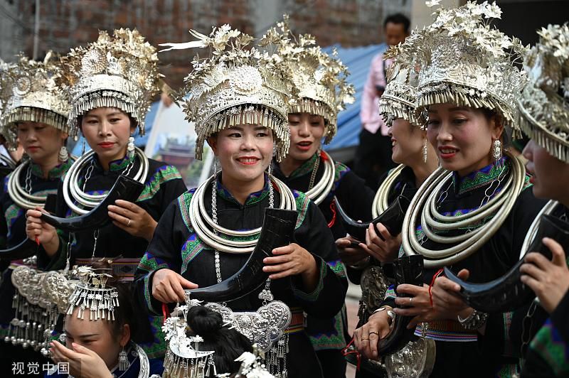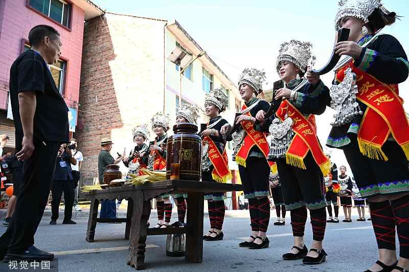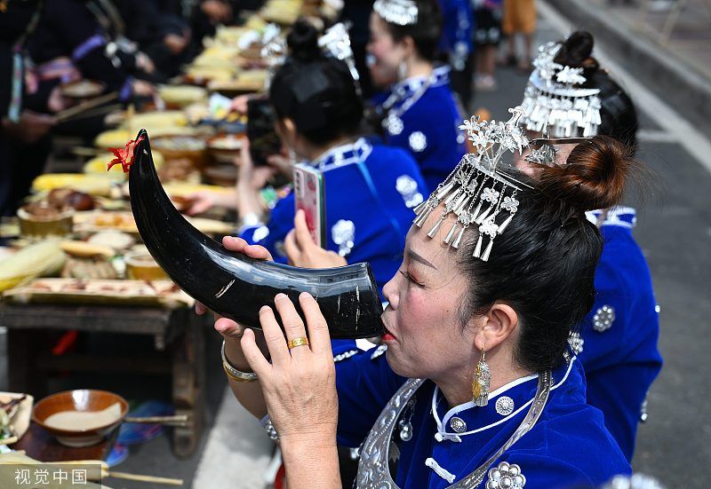 2022年8月17日,贵州锦屏,八方宾朋聚集彦侗村,参加长桌宴迎宾活动,喜迎“七月二十”赶歌节。