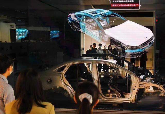 △武汉光谷,用于汽车制造的三维五轴激光切割焊接装备样品进行展示。