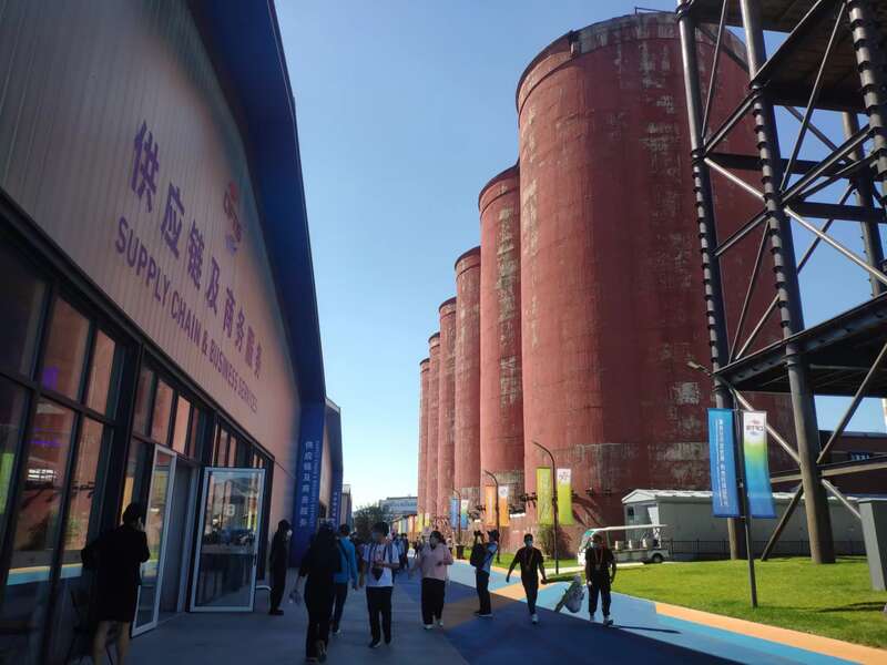 设置在煤仓前的供应链及商务服务展馆。中青报·中青网见习记者 朱彩云/摄