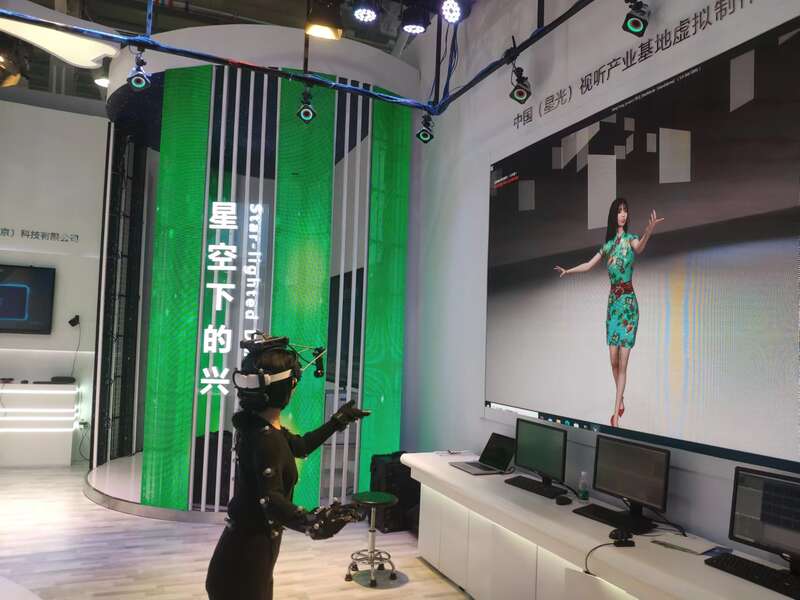 在离刘海娜最近的文旅服务展馆里,传统与现代的交互也正在上演。今天上午,一名京剧演员穿戴着智能装备,展示起实时动作捕捉效果。据展台的相关负责人介绍,让虚拟人“活”起来的实时动作捕捉技术可以应用于虚拟直播、动画制作等场景。
