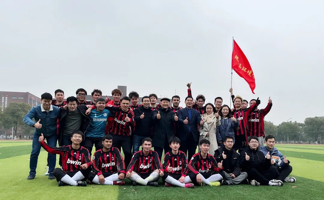 从一支名不见经传的球队成长为冠军之师,原因很多,首先是我们本身实力强硬;其次我们团结一致、我们信任彼此;还有,地理学院的领导、老师、同学们都给了我们很大的支持,体育部的同学会给我们送水配药,在后勤上给我们极大的帮助。地理学院的很多同学会在比赛时化身啦啦队,为我们呐喊助威;学院的领导、老师也关心着我们,赛时到场、赛后鼓励,给我们加油鼓劲。