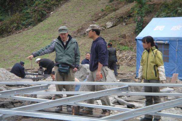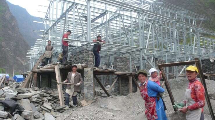 以建筑技术而言,我们项目从蒙古到海南岛、从东边到西藏、尼泊尔,地域跨度和气候变化很大,必须有各方面的专业知识。我们提供一个建房系统,这个系统必须具有开放性、可以因地制宜。比如我们使用的钢架结构,可以用于多处。当钢架结构在如同“骨架”般架起建筑后,其“皮肉”(建筑所用材料、样式)需要在地居民自己拼凑、自己动手、并根据自己的意见有所变化,它是有弹性的。比如在汶川杨柳村,我们提供了钢结构材料、带领村民组装后,更多由村民自己构筑。尼泊尔也是一样,我们只是运了部分比较重要的“骨料”进去,剩余的是他们的剩料、灾后垮下来木料、石头等再利用。