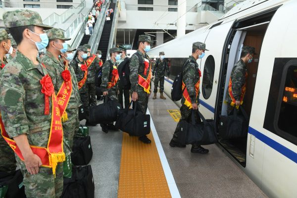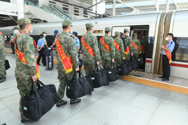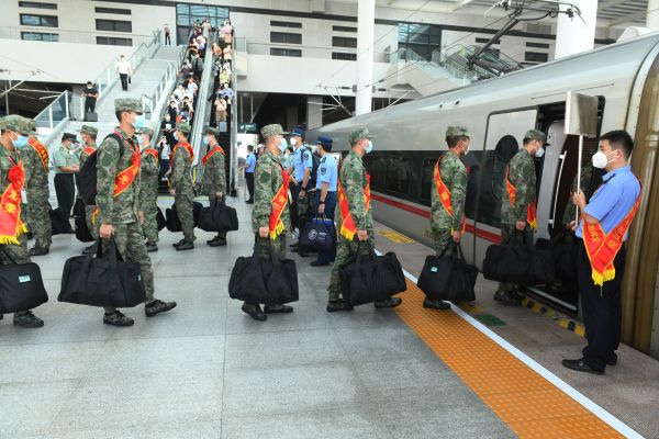 当日,阜阳市2022年下半年(秋季)首批新兵正式启运,700名新兵身穿戎装,佩戴绶带和光荣花,精神抖擞,从高铁阜阳西站出发奔赴北京、河南、福建等地,奔赴绿色军营,开启保家卫国新征程。据了解,阜阳今年下半年新兵起运时间为9月16日至19日,全市共有1000余名应征青年通过严格的体格检查、政治考核和役前训练,经批准光荣入伍,计划分32批运送。