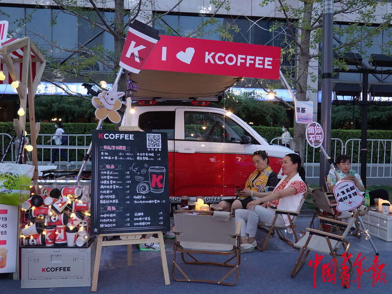 北京亮马河畔,快闪的咖啡店成为了市民的休闲场所。中青报·中青网记者 胡宁/摄
