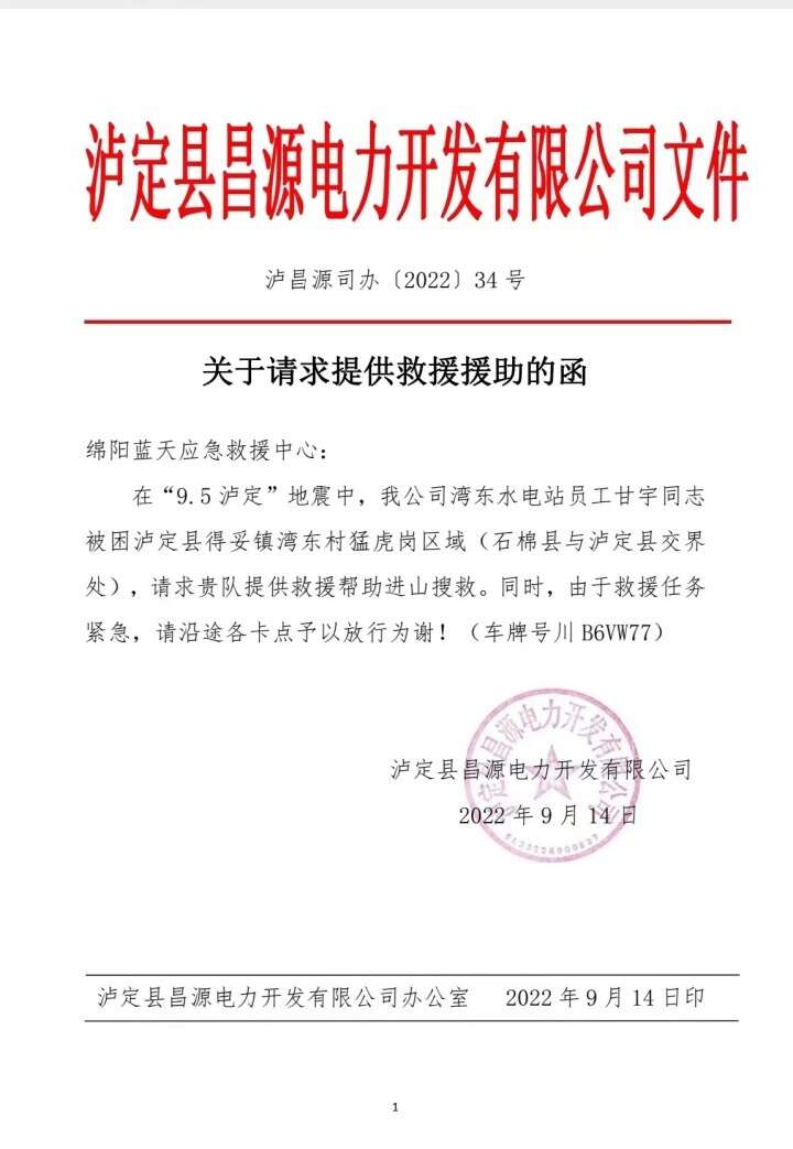 9月8日,被困75小时的罗永继续下山,看到有直升机搜救,用找到的打火机生火,被救援力量发现后获救。此后,参与搜救的绵阳蓝天救援队左队长又收到请求救援甘宇的函,9月14日,湾东水电站所属泸定县昌远电力开发公司向绵羊蓝天救援队请求进山搜救,该公司称甘宇地震后被困在得妥镇湾东村猛虎岗区域(石棉县于泸定县交界处)。