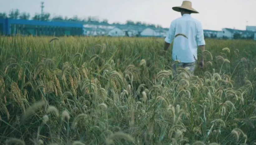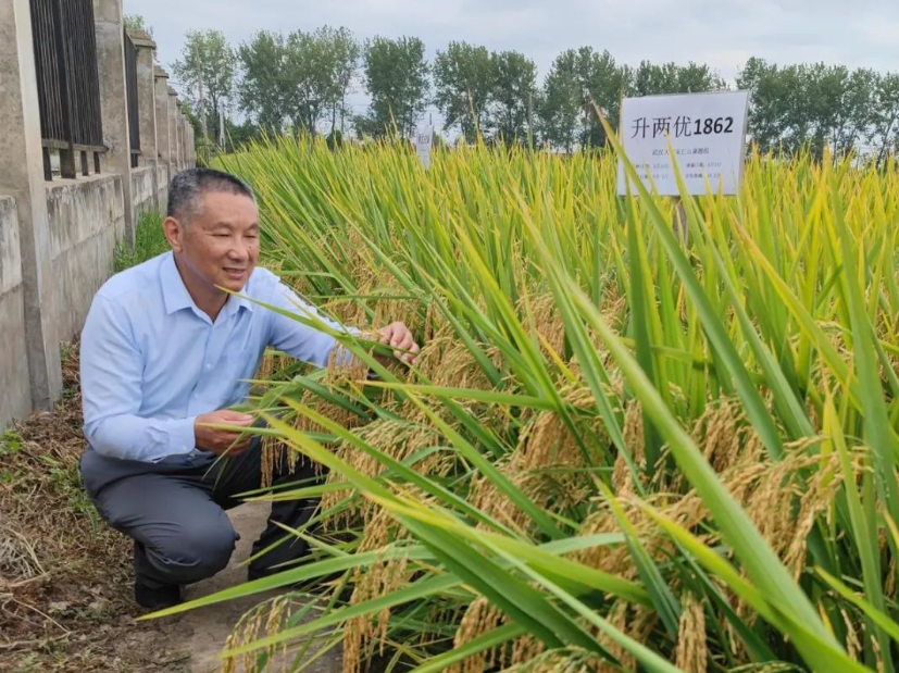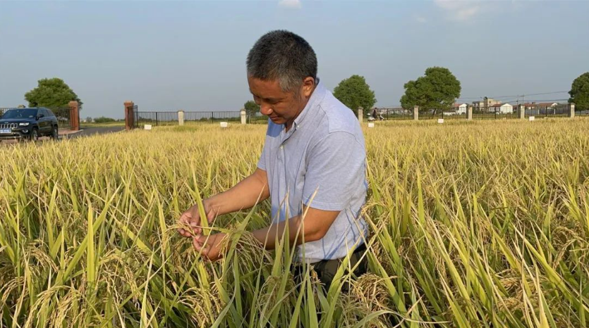 ▲朱英国(左一)和朱仁山(右一)在试验田