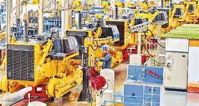 近年来,山东山推工程机械股份有限公司积极响应“一带一路”倡议,主要产品在“一带一路”沿线均有销售。图为在山推总装车间,工人正在作业。史家民摄(人民视觉)