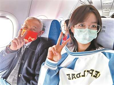 两天后,万宝便带爷爷和爸妈坐上飞机,飞过近2000公里的距离,帮爷爷实现心愿。