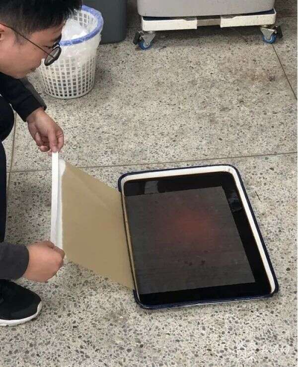 丁峰以皮纸进行加固