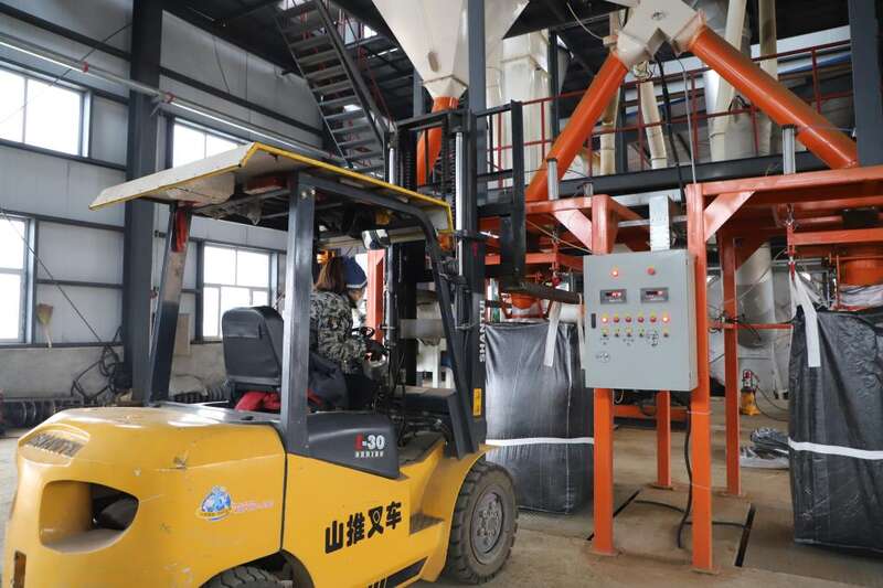 深秋时节,记者来到位于依兰县的哈尔滨春宇生物科技有限公司永丰收购加工厂,看见发酵好的万寿菊堆成了小山,工人开着铲车进进出出。车间里,万寿菊被投进搅拌机碾碎,顺着履带传到下一环节,然后由制粒机压缩成颗粒,最后打包、发运。